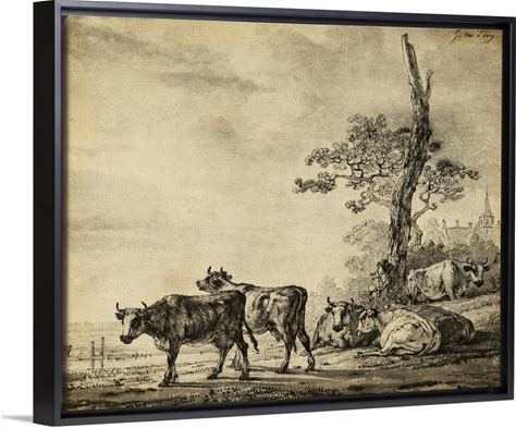 Pastoral Etching II | Large Stretched Canvas, Black Floating Frame Wall Art Print | Great Big Canvas