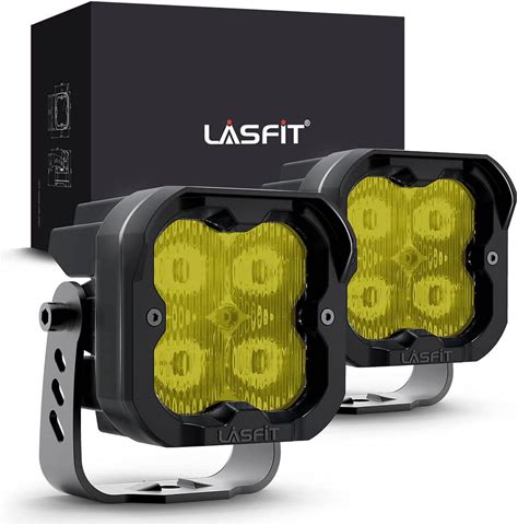 LASFIT Yellow LED Pod Lights, SAE Driving Lights Beam 3 Inch 2Pcs 18W 3700K With Breather, Super Bright Driving Led Pods TIR Optics Offroad Lighting For Truck 4X4 ATV UTV Cars