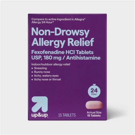 Fexofenadine Hydrochloride Allergy Relief Tablets - 15Ct - Up&Up: 180Mg Strength, Antihistamine, 24-Hour Relief