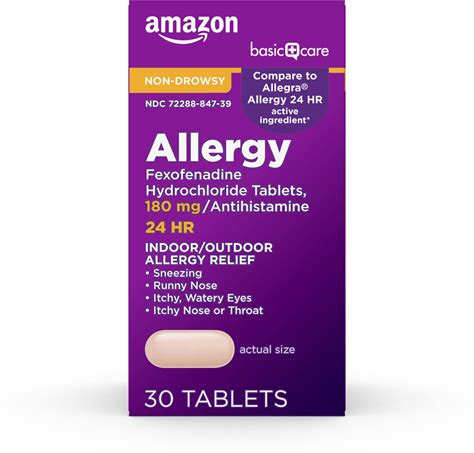 Amazon Basic Care All Day Allergy Relief, Fexofenadine Hydrochloride Tablets, 180 Mg, Antihistamine, Non-Drowsy, 24-Hour Relief, Indoor & Outdoor