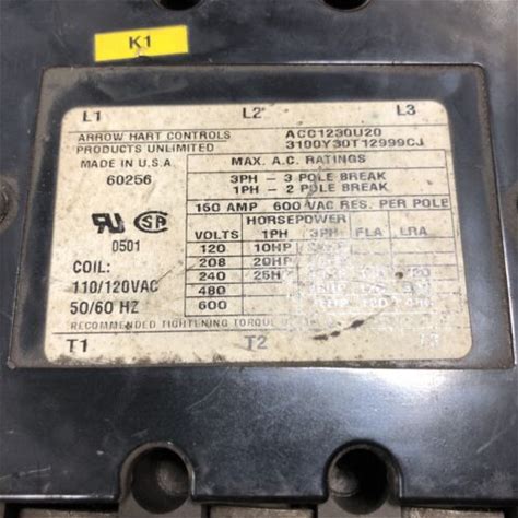 Arrow Hart Acc530u20 S3 Contactor 62 Amp 600 Vac