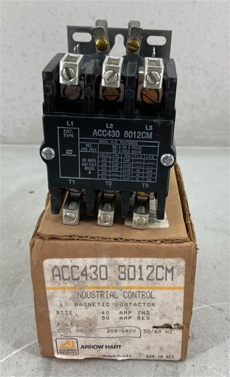 Arrow Hart acc430-8012cm Magnetic Contactor 3P 40A Ind 50A Res