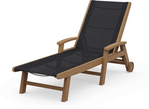 POLYWOOD Coastal Chaise Lounge Chair With Wheels In Natural/Black Sling - Outdoor Furniture