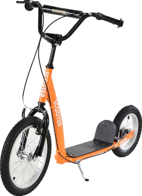 Aosom Youth Scooter Trick Scooter With Adjustable Handlebar, Front And Rear Dual Brakes & Inflatable Wheels, For Kids 5+, Orange | Aosom.Com