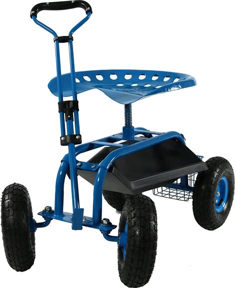 Sunnydaze Garden Seat With Wheels - Rolling Gardening Seat - Garden Stool On Wheels With Adjustable Handle And Utility Tray - Blue