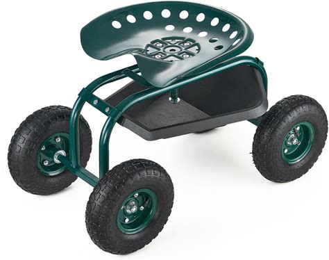 VEVOR Rolling Garden Cart With Swivel Seat, Heavy Duty 300 Lbs Capacity, Storage Basket & Tool Tray, Outdoor Gardening Stool Scooter