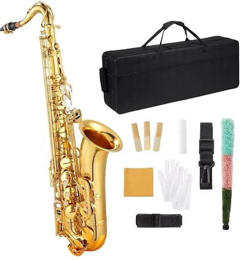 Bb Tenor Saxophone Beginner Kit - Brass Sax W/Hard Case, Mouthpiece, Reeds & Full Cleaning Kit, Gold