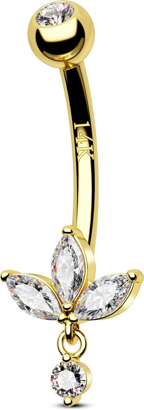 COCHARM 14K Gold Belly Button Rings For Women 14K Gold Navel Rings Cute Dainty CZ Belly Button Piercing 14K Gold Belly Piercing Jewelry