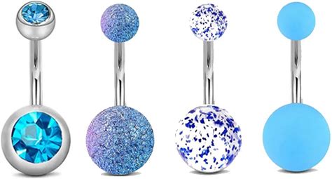 WKOUD 1Pcs/4Pcs Belly Button Rings Stainless Steel Navel Rings 4 Style For Women Girls 14G Body