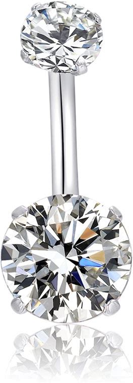 HQLA 14G Belly Button Rings Surgical Stainless Steel Round Cubic Zirconia Navel Barbell Stud Body Piercing