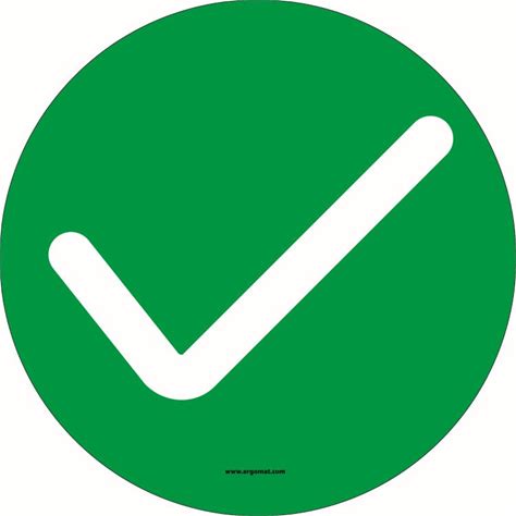 NMC Green Check Mark Graphic Sign Label, Pressure Sensitive Vinyl 0045, 5Pk, 6 H X 6 W In, ISO673AP