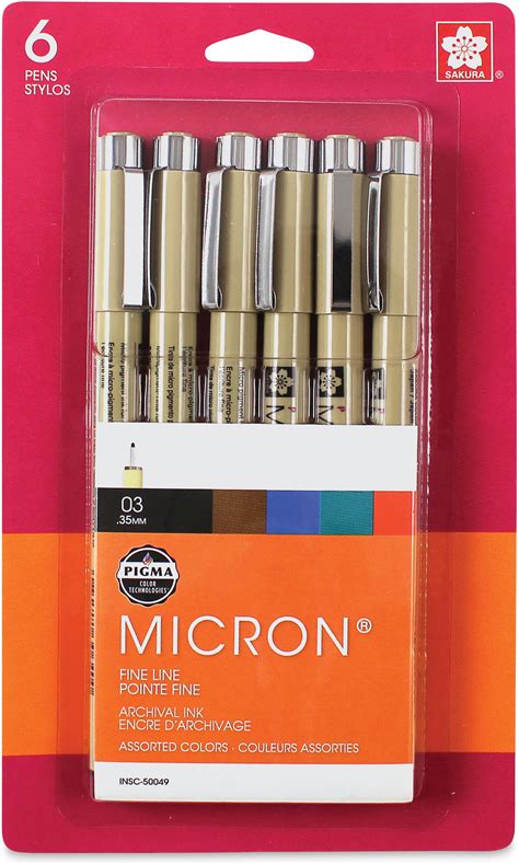 Sakura Pigma Micron Pens - Set Of 6, Assorted Colors, 03