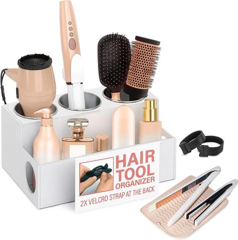 Casavita White Hair Tool Organizer With Heat-Resistant Mat, Hot Tools Organizer, Hair Brush Organizer, Hair Tool Holder, Hair Dryer Organizer, Hot