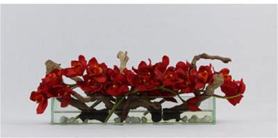 Driftwood Cymbidium Orchids Centerpiece In Glass Planter Size: 8" H X 36" W X 6" D Flower Color: Red