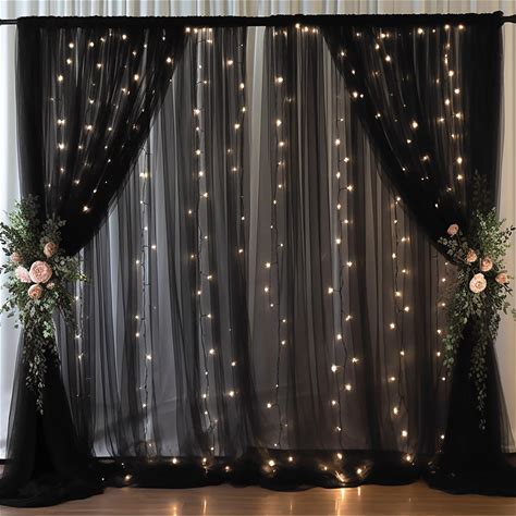 20x10ft Black Tulle Backdrop Curtain With Lights String For Parites, Sheer Backdrop Curtains For Wedding Baby Shower Birthday Party Photo Shoot