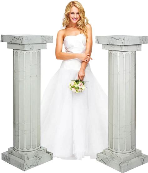 2PCS White Roman Pillar Set, Plastic Wedding Column Stand, Greek Plant Stand, Hollow Flower Stand For Wedding Party Event Decor (10.63X34.65 In)