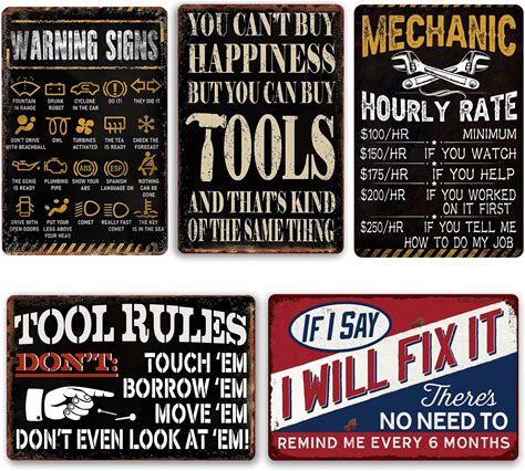 Vintage Metal Tin Signs Retro Garage Signs For Men Wall Decorations Old Car Shop Posters Oil And Gas Station Sign Man Cave Decor 5 Pces 8×12 Inch