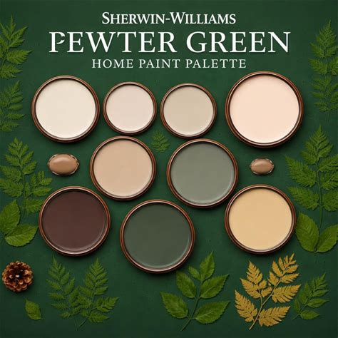 Pewter Green Sherwin Williams Paint Palette Whole Home Paint Color Scheme Pewter Green Coordinating Color Moody Dark Green Paint Colors 2026
