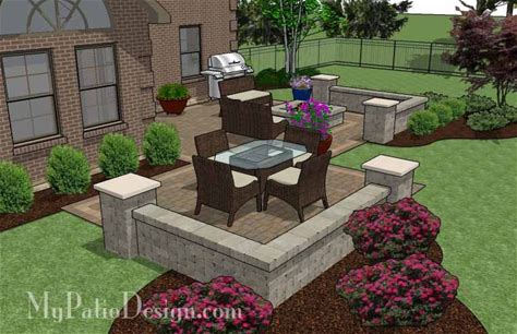DIY Patio Plan With Two Seating Walls And Fire Pit 540 Sq. Ft.