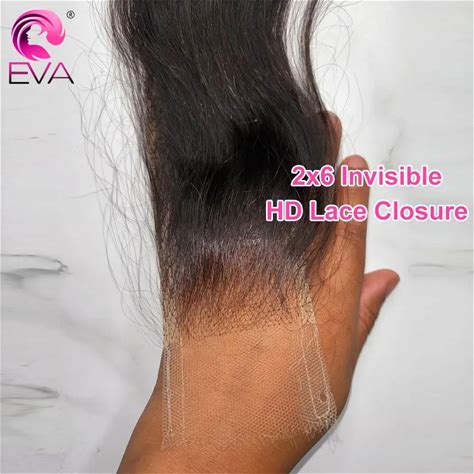 Eva Hair 2X6 Invisible HD Lace Closure Straight Human Hair Closure Deep Part Ultra Thin HD Lace Melt