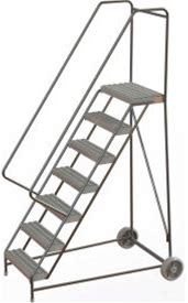 Vestil 6 Step Steel Rolling Ladder, 50 Degree, 24"W Grip Strut Step, 350 Lb. Capacity, LAD-6-14-G-EZ