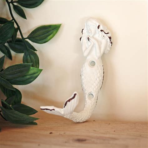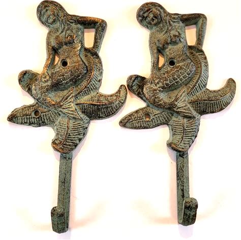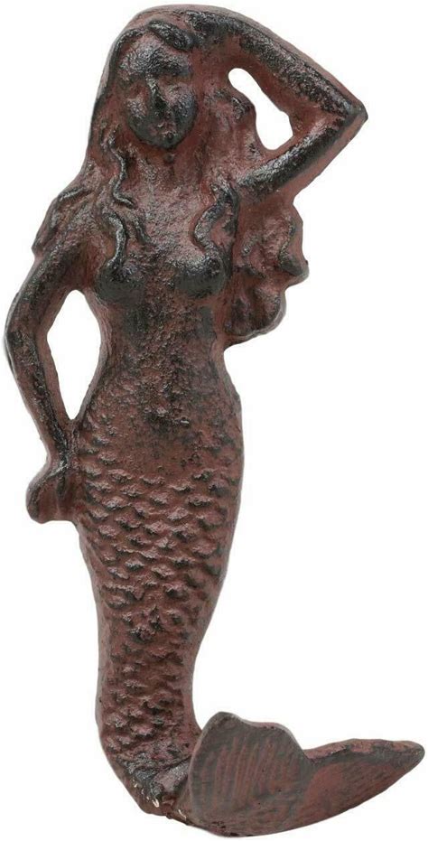 Ebros 6" Tall Cast Iron Rustic Wall Coat Hook Mermaids Hooks For Keys Hats (1)