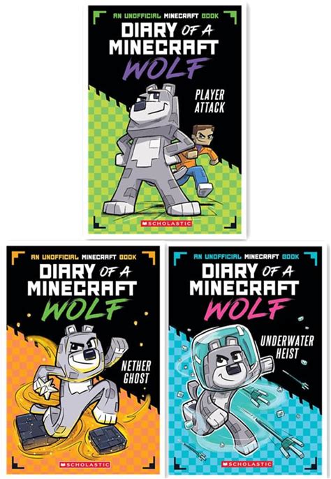 Scholastic Diary Of A Minecraft Wolf Series 3 Books Set - Player Attack, Underwater Heist, Nether Ghost