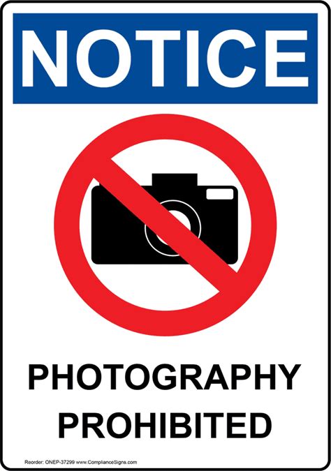 Portrait OSHA NOTICE Photography Prohibited Sign With Symbol, Plastic | Size: 7X5, ONEP-37299 | By Compliancesigns
