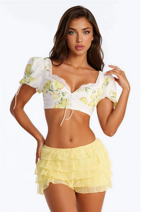 Lace Trim Puff Sleeve Floral Short Sleeve Sweetheart, Cropped Blouse In White Size XL | Fashion Nova