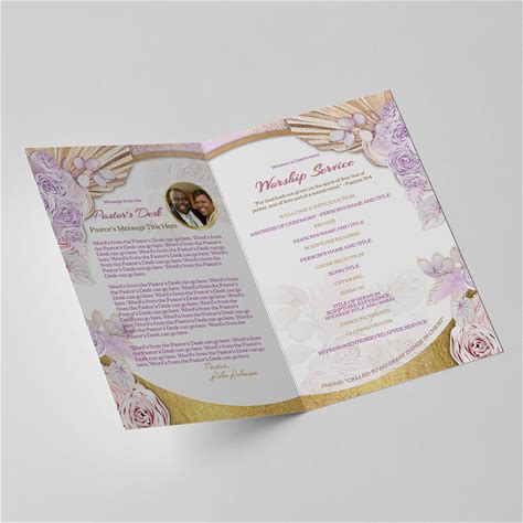 Floral Church Program Template | Women's Day, Pink & Gold (Editable, Print Sizes)