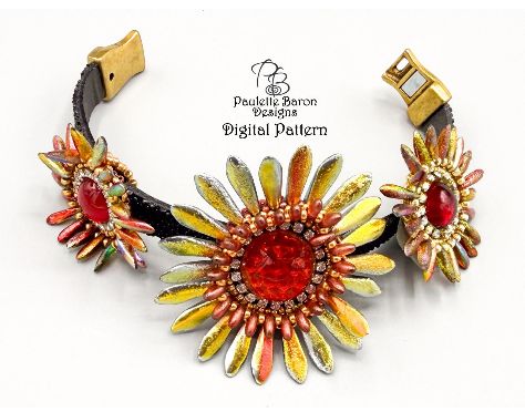 3D Peyote Stitch Leather Bracelet Tutorial, Sculptural Floral-Style Sliders, Reflecting Daisy Sliders, Bead Embroidery, Bead Weaving Pattern