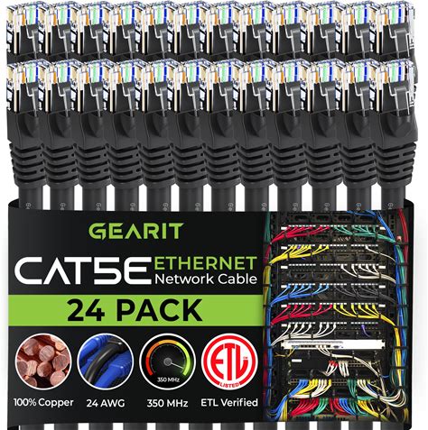 GEARIT 24-Pack, Cat5e Ethernet Patch Cable 6 Feet - Snagless RJ45 Computer LAN Network Cord, Black