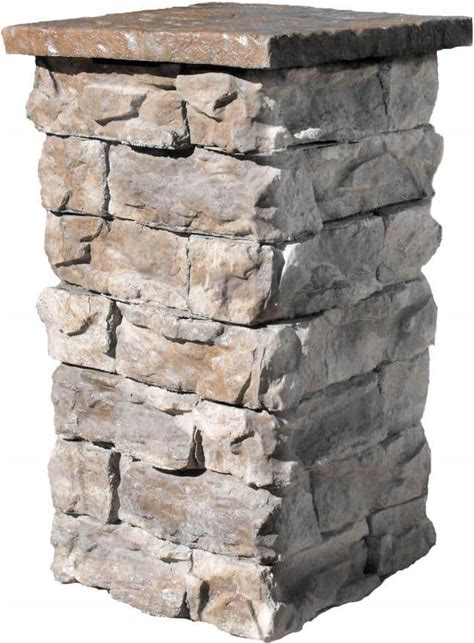 Deckorators Cast Stone Post Covers 42 Inch - Beige Stacked Stone - 2Pc