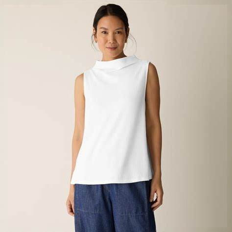Women's All Ways Stretch High-Crewneck Tank Top In White Size Large | White House Black Market FORME
