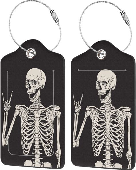 EOBKLAX 2 Pack Luggage Tag For Suitcase,Human Skeleton PU Leather Suitcase Tags Identifiers With Privacy Name Address Labels And Durable Steel Loop
