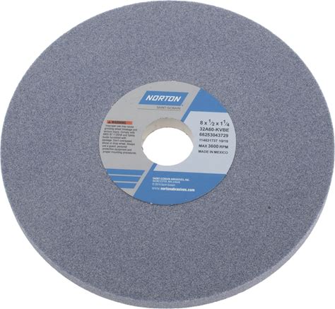 Norton Surface Grinding Wheel: 8" Dia, 1/2" Thick, 1-1/4" Arbor, 60 Grit - Type 1, Aluminum Oxide, Vitrified Bond, Medium Grade | Part 66253043729