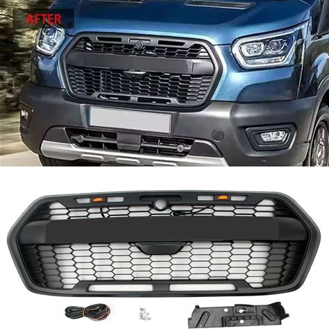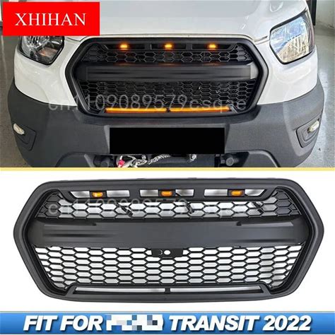 Car Front Grill Bumper Hood Honeycomb Mesh Grille W/ 3LED For Ford Transit Custom (European Version)