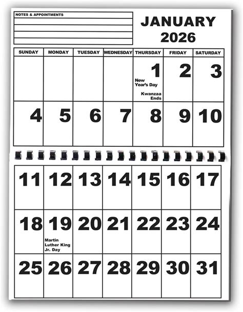 2026 Jumbo Large Print High Contrast Wall Calendar