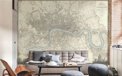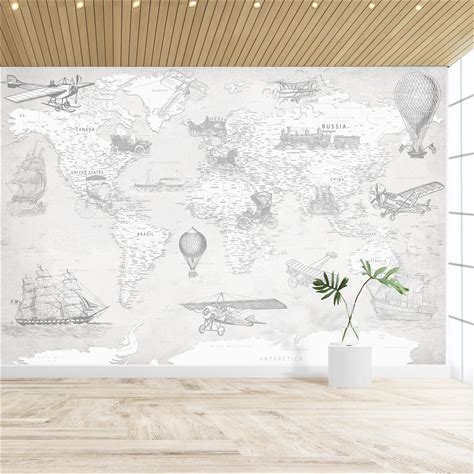 Antique Map Wallpaper Vintage Map Mural Grey Wall Decor | Self-Adhesive / Traditional Wallpaper