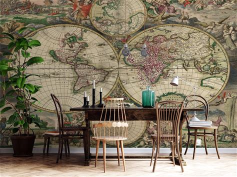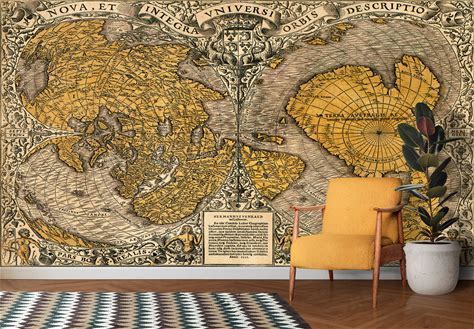 Peel and Stick Vintage Map Wallpaper - Antique Library Wall