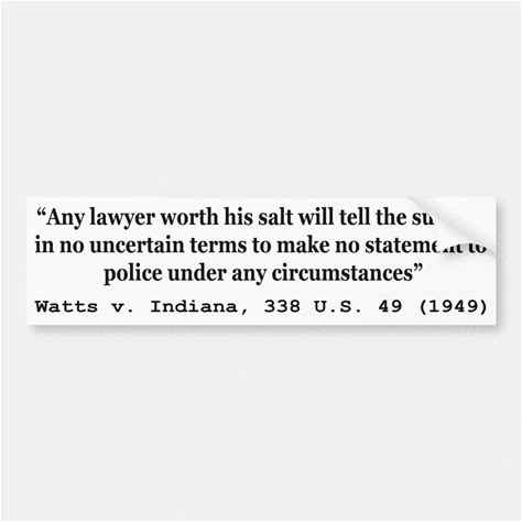 5th Amendment Watts V Indiana 338 US 49 1949 Bumper Sticker