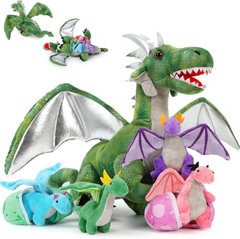 Maogolan Dragon Plush Stuffed Animal Family, Giant Green Stuffed Dragon Toy With Babies Inside, Bulk