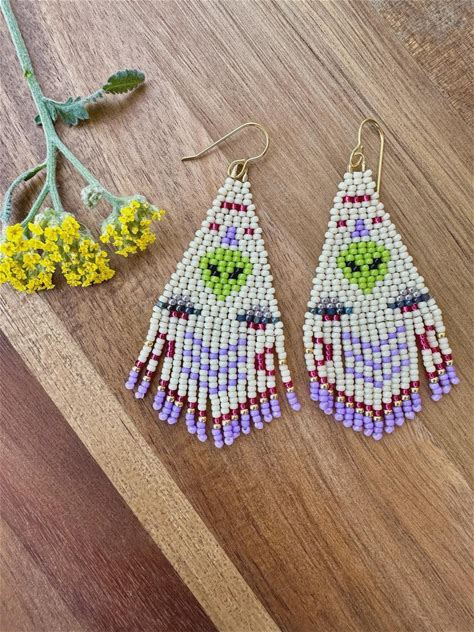 Beaded Ufo Earrings| Hand Beaded Black Alien Earrings | Ufo Earring