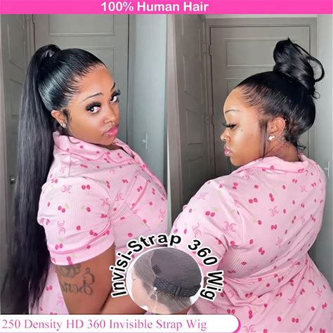 Invisible Strap HD 360 Full Lace Wig Human Hair 250 Density Wig Bone Straight Pre Cut 360 Lace Front