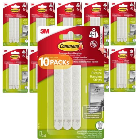 Command Picture Hanging Strips, Narrow, 10 Packs Of 3 Pairs (60 Strips) - For Pictures, Frames, Mirrors & Wall Décor - D