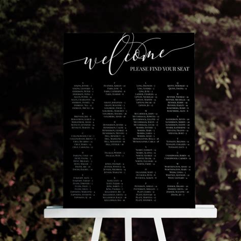 Black Welcome 4 Column Seating Chart Any Event Foam Board