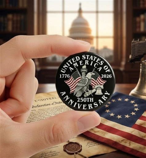 Patriotic USA 250 Button, 250th Anniversary 1776 2026 Badge, Eagle American Flag Pin, July 4th Party Favor Pin