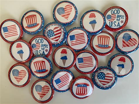 4th Of July Independence Day Lot Of 20 Cute Patriotic 1" Or 1.25" Buttons Pinback Flatback Hollowback Or Magnet You Choose