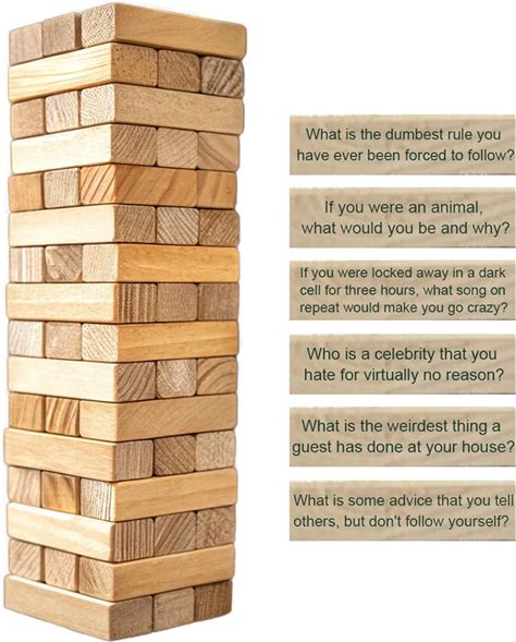 Ice Breaker Questions Wood Balance Stacking Blocks Game For Adults - Get To Know Each Other Family Night Games Tumbling Tower - Icebreaker