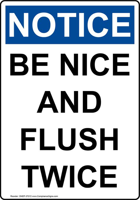 Portrait OSHA NOTICE Be Nice And Flush Twice Sign, Plastic | Size: 7X5, ONEP-37072 | By Compliancesigns
